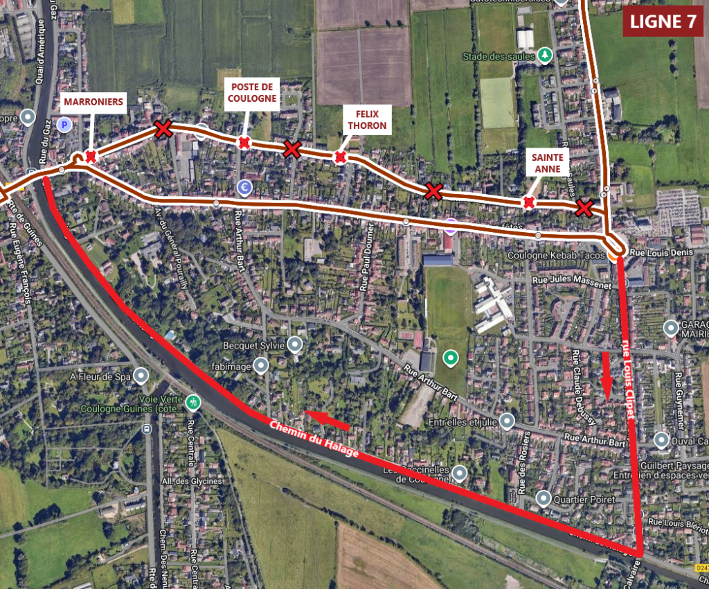 Les arrêts « Sainte Anne », « Felix Thoron », « Poste de Coulogne » et « Marronniers » ne seront pas desservis.