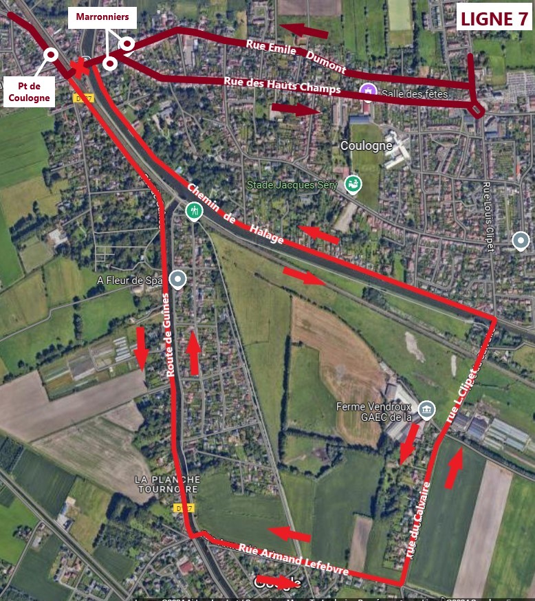 En raison de travaux de maintenance du pont de Coulogne lundi 09/02 de 10h00 à 12h30, la ligne 7 sera déviée.