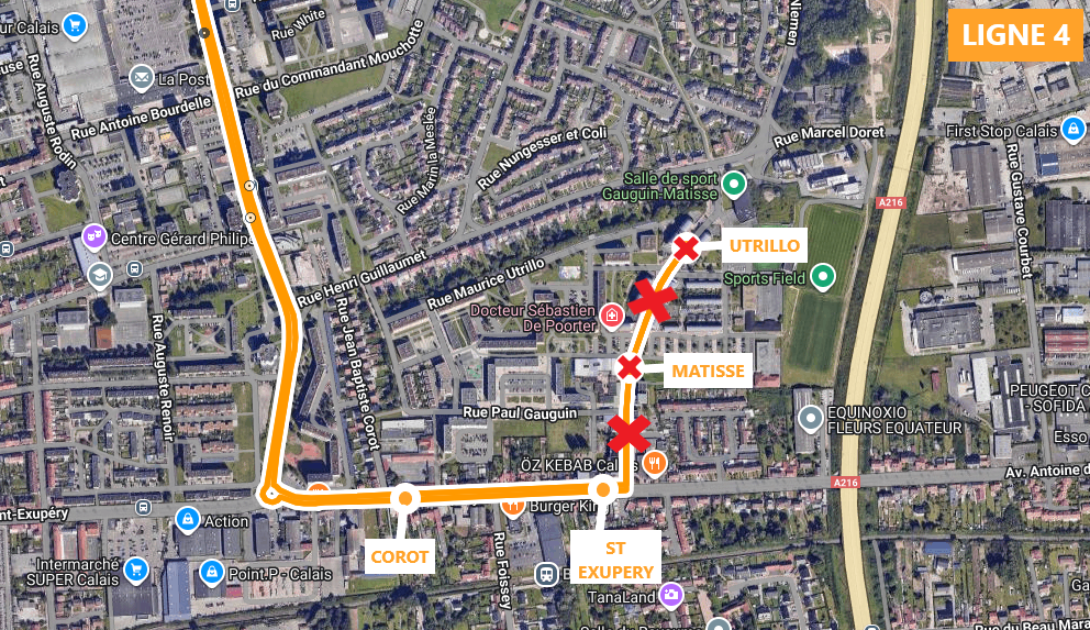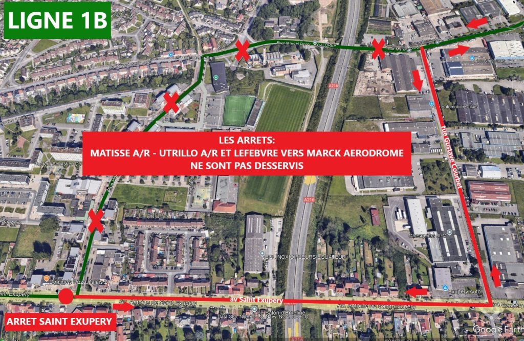 Les arrêts « Utrillo » et « Matisse » ne seront pas desservis dans les 2 sens et l’arrêt « Lefebvre » ne sera pas desservi dans le sens vers Marck Aérodrome.